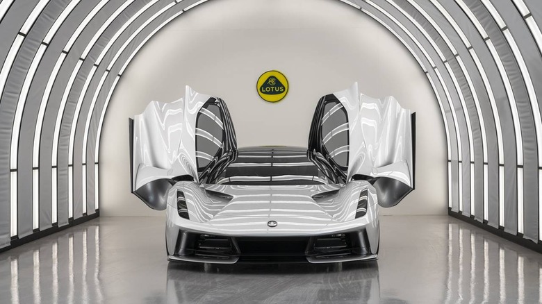 As for the Lotus EVIJA, Lotus says that the name means "the first in existence." The vehicle will produce 2000 PS, or about 1972 horsepower. It will reach 62 mph from a standstill in under three seconds, 186 mph and under nine seconds, and has a top speed of over 200 mph. The vehicle will be able to charge its batteries fully in under 10 minutes with an EV driving range of 250 miles.