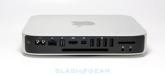 It's the port selection that marks the new Mac mini's other great departure: Apple has finally dropped the DVI socket and replaced it with an HDMI output (alongside the existing Mini DisplayPort). You lose a USB 2.0 in the process – it's down to four – but also get an SD/SDHC/SDXC card slot along with the FireWire 800, gigabit ethernet and audio in/out (which double as both analog and digital). Inside there's WiFi a/b/g/n and Bluetooth 2.1+EDR as standard.