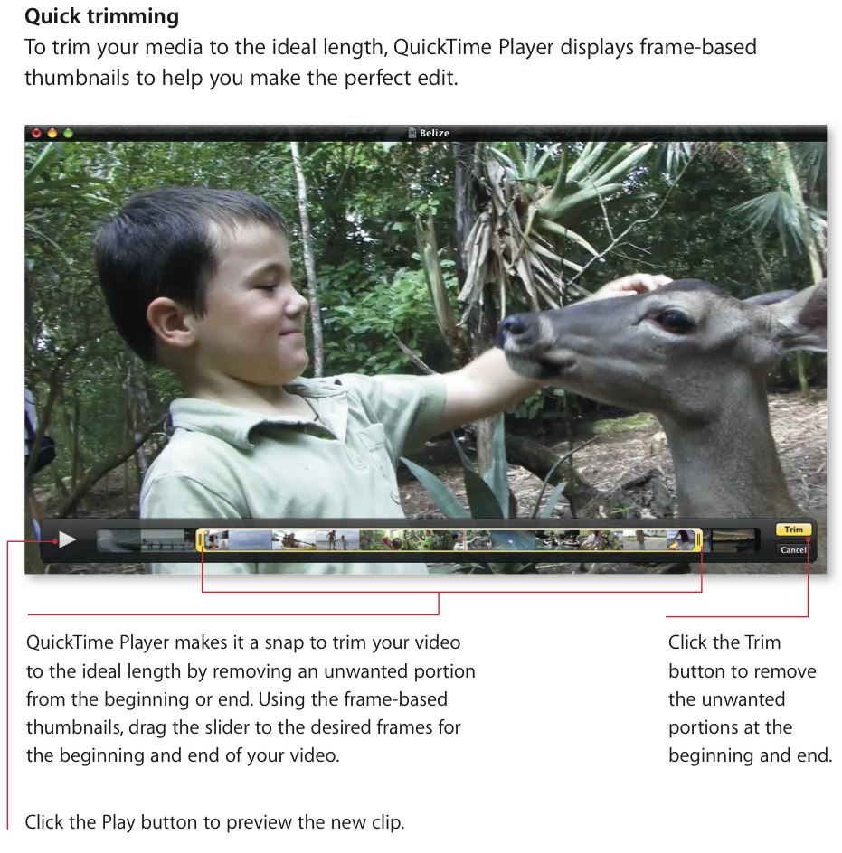 With Snow Leopard comes QuickTime X, and a further blurring of the lines between content consumption and content production. Like the iPhone 3GS' basic video editing tools, now QuickTime X offers the ability to trim footage by dragging the ends of the thumbnail timeline into place. As we said in our iPhone 3GS review, this isn't going to supplant any serious editing from taking place – there's no way to splice clips together, nor slice content from the middle of the footage – but it's welcome flexibility when you merely want to get a clip trimmed and emailed as soon as possible. With that in mind, QuickTime X's "Share" button – which swims into view with the rest of the nicely animated control bar – now offers one-click uploads to MobileMe and YouTube, together with preset conversions to iPod, iPhone and Apple TV-friendly formats. We only wish Apple had added the ability to introduce your own preset settings, for those users who lack an Apple PMP in their pocket.