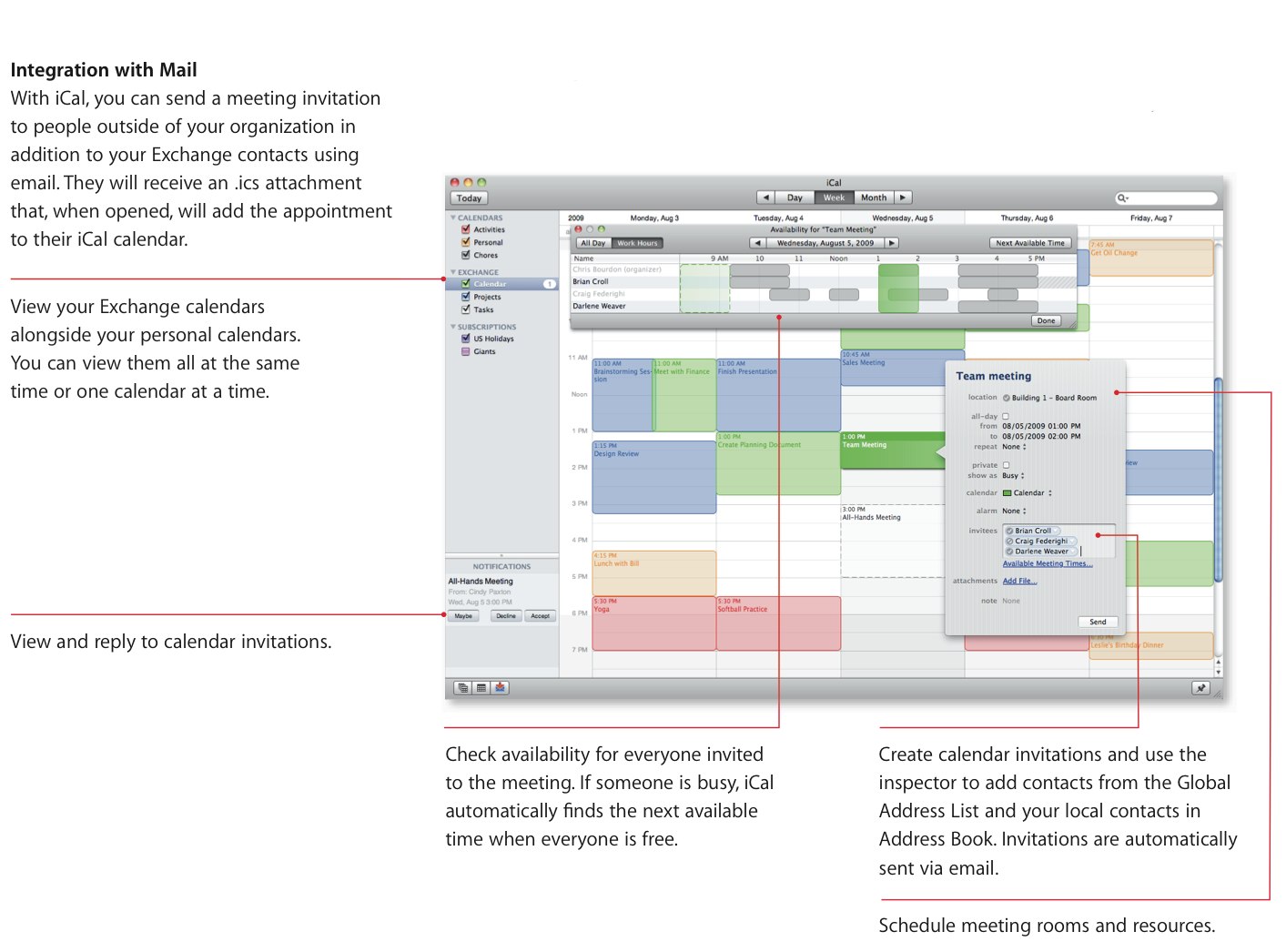 Beyond that, it works just as you'd expect from an Exchange system, and it leaves us wondering exactly what sort of market Microsoft Outlook might arrive to when it launches in late 2010. The combination of Mail, iCal and Address Book – not to mention their integration with OS X – makes the extra functionality Outlook provides a tough sell, though we imagine most users will acquire it as part of a full Office installation rather than as a standalone product. Still, there's now no reason why third party applications are required merely to clinch Exchange compatibility.
