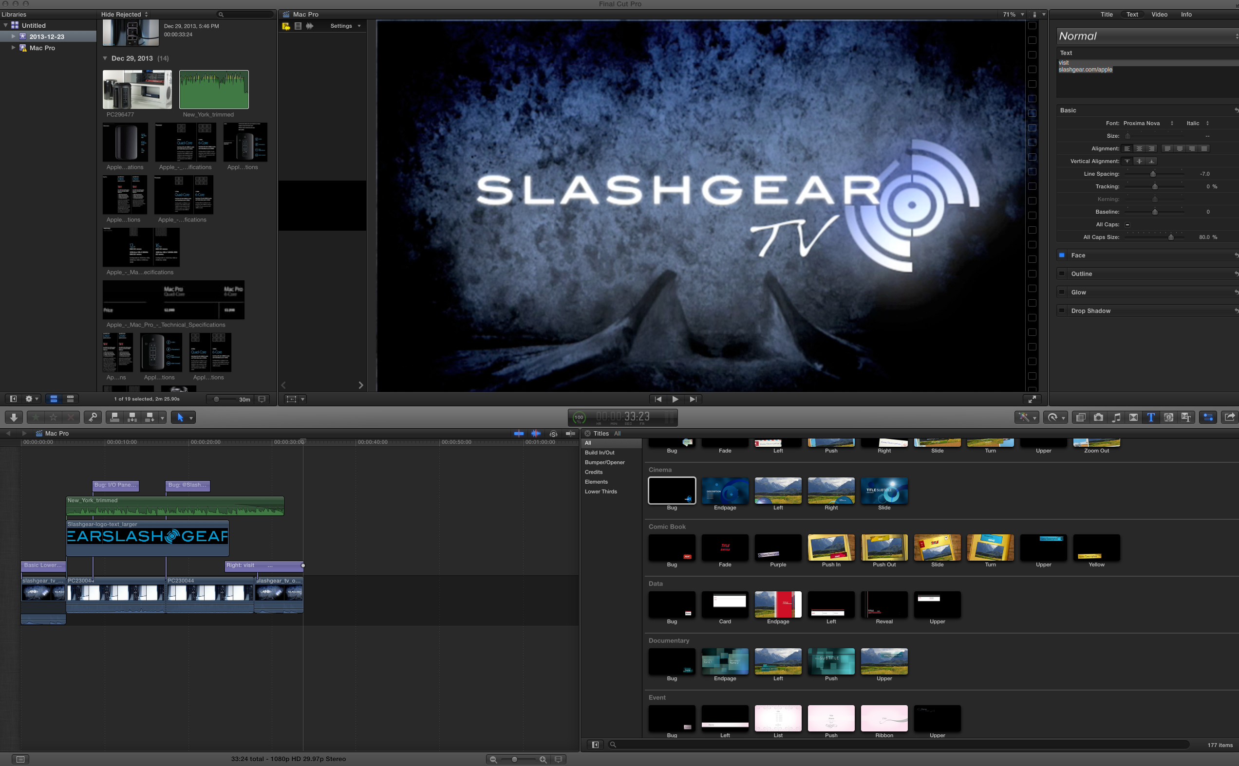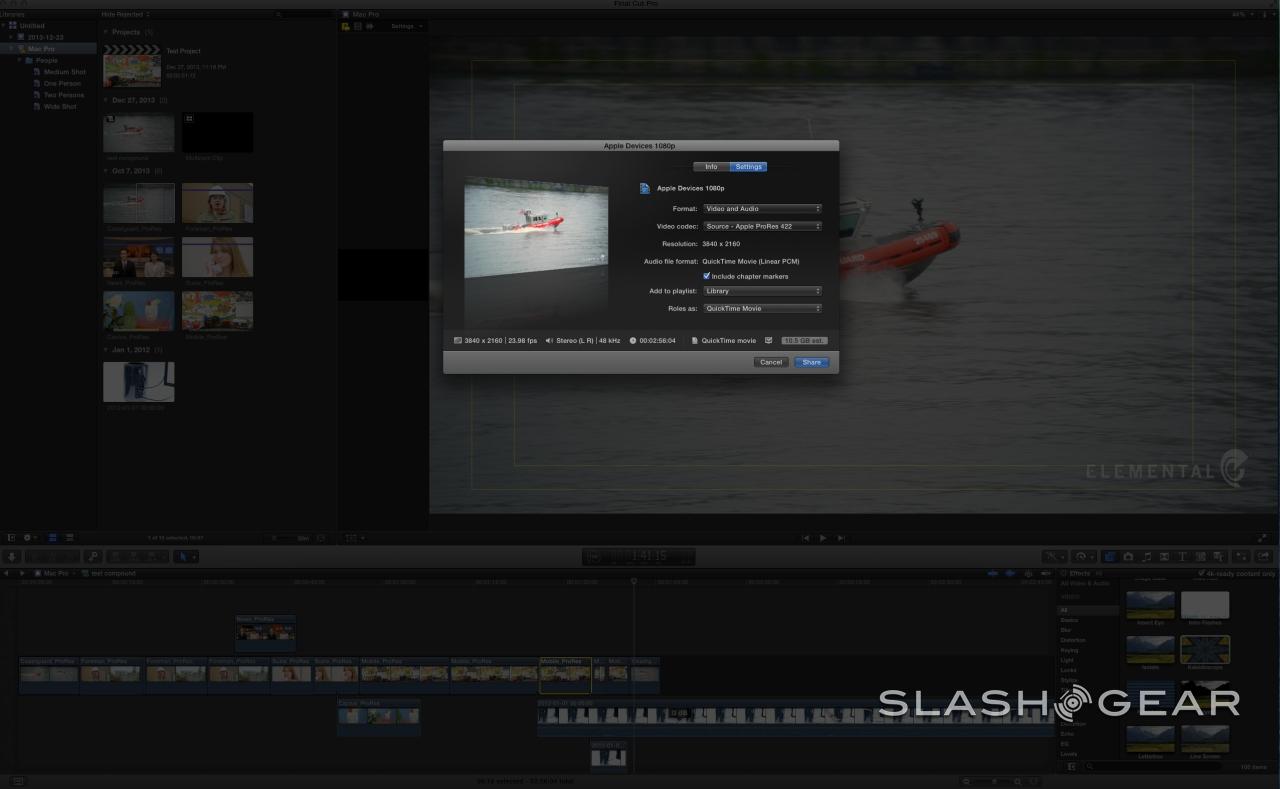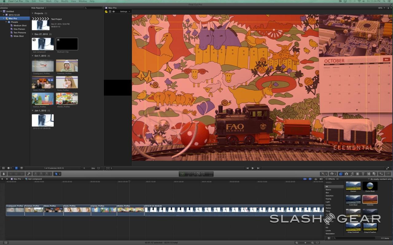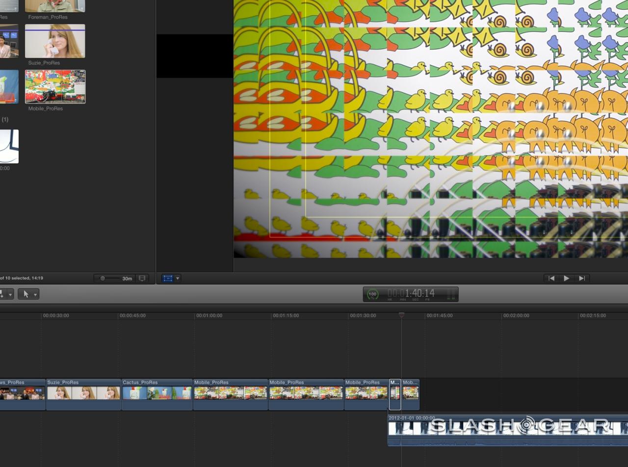 Poster-child for the 2013 Mac Pro, then, is Final Cut Pro X, updated this month to optimize for the dual GPUs on offer. The $299.99 video editing suite was already powerful, but it's with the dual-GPUs it has to play with here that it really flies.