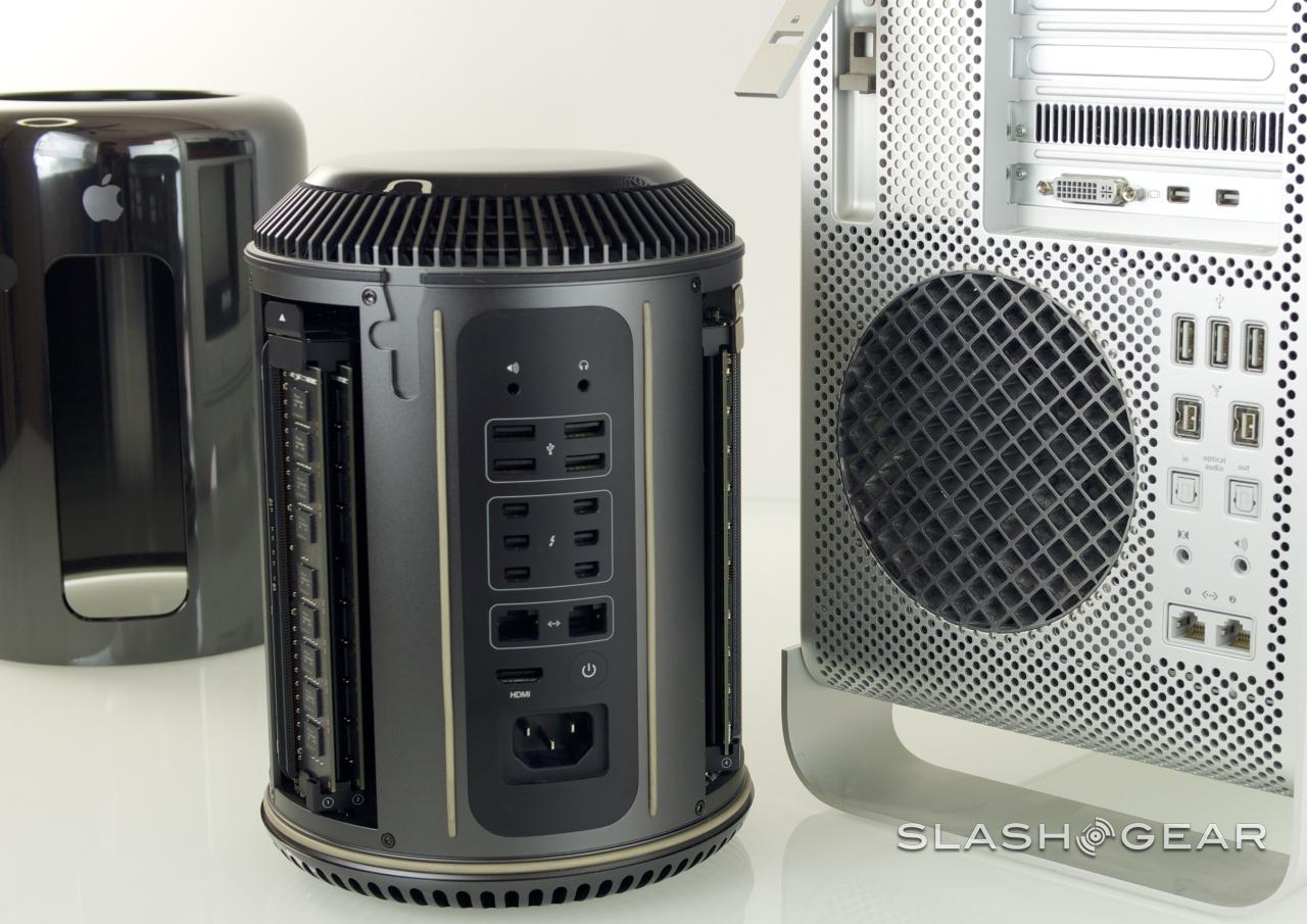 Neither is Apple short on options for those wanting to trick-out their new desktop. All but the processors are accessible for user-upgrades, though since they're relatively new, rare slots and sockets, actually finding a third-party source will be tough for a while. There's a 3.0GHz 8-core with 25MB of L3 cache, for $2,000 or $1,500 depending on your starting configuration, and a 2.7GHz 12-core with 30MB of L3 cache for $3,500 or $3,000 respectively. Up to 64GB of 1866MHz DDR3 ECC memory can be specified, and up to 1TB of PCIe solid-state storage. Up to dual AMD FirePro D700 GPUs with 6GB of GDDR5 VRAM each can be installed.