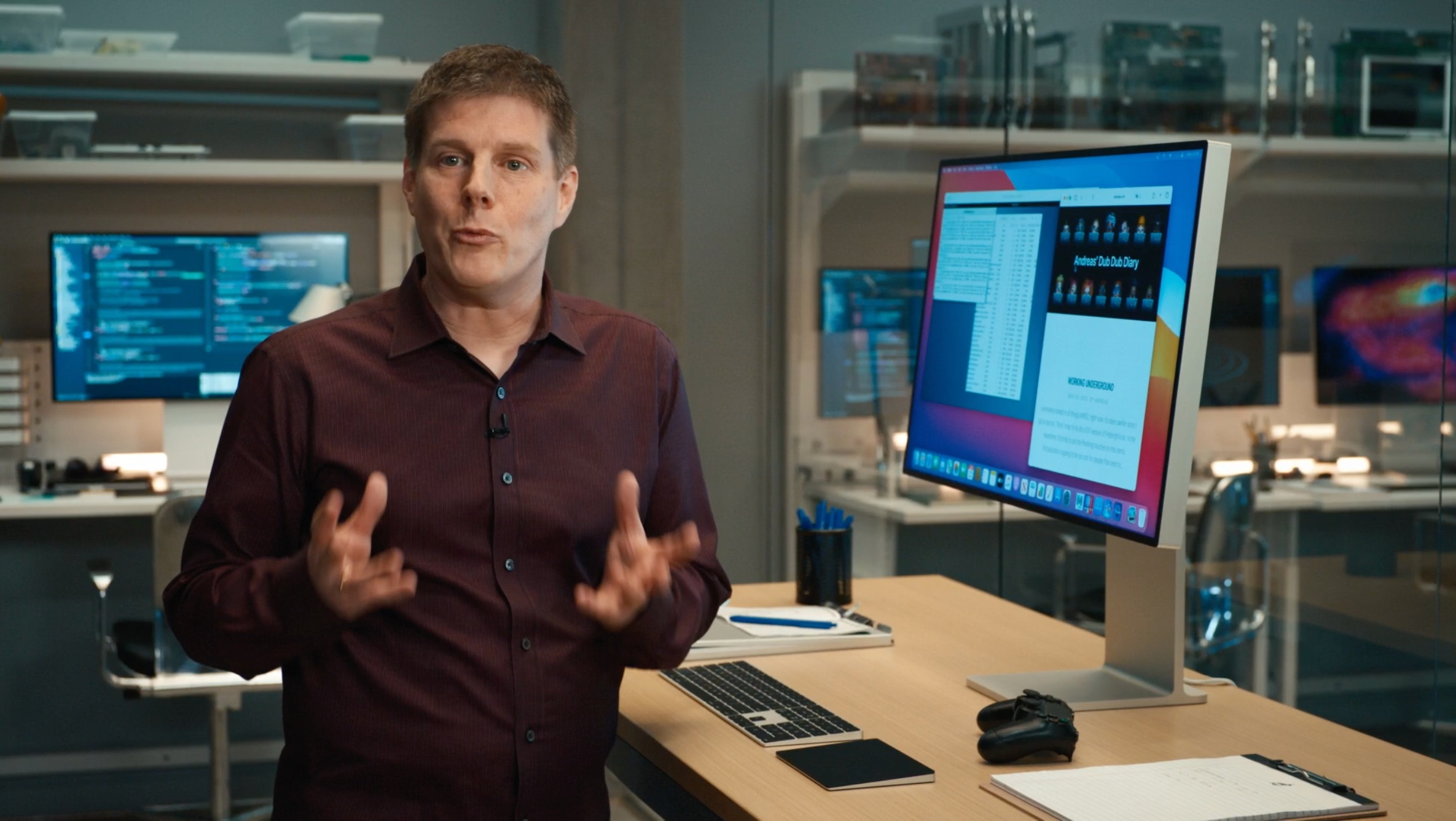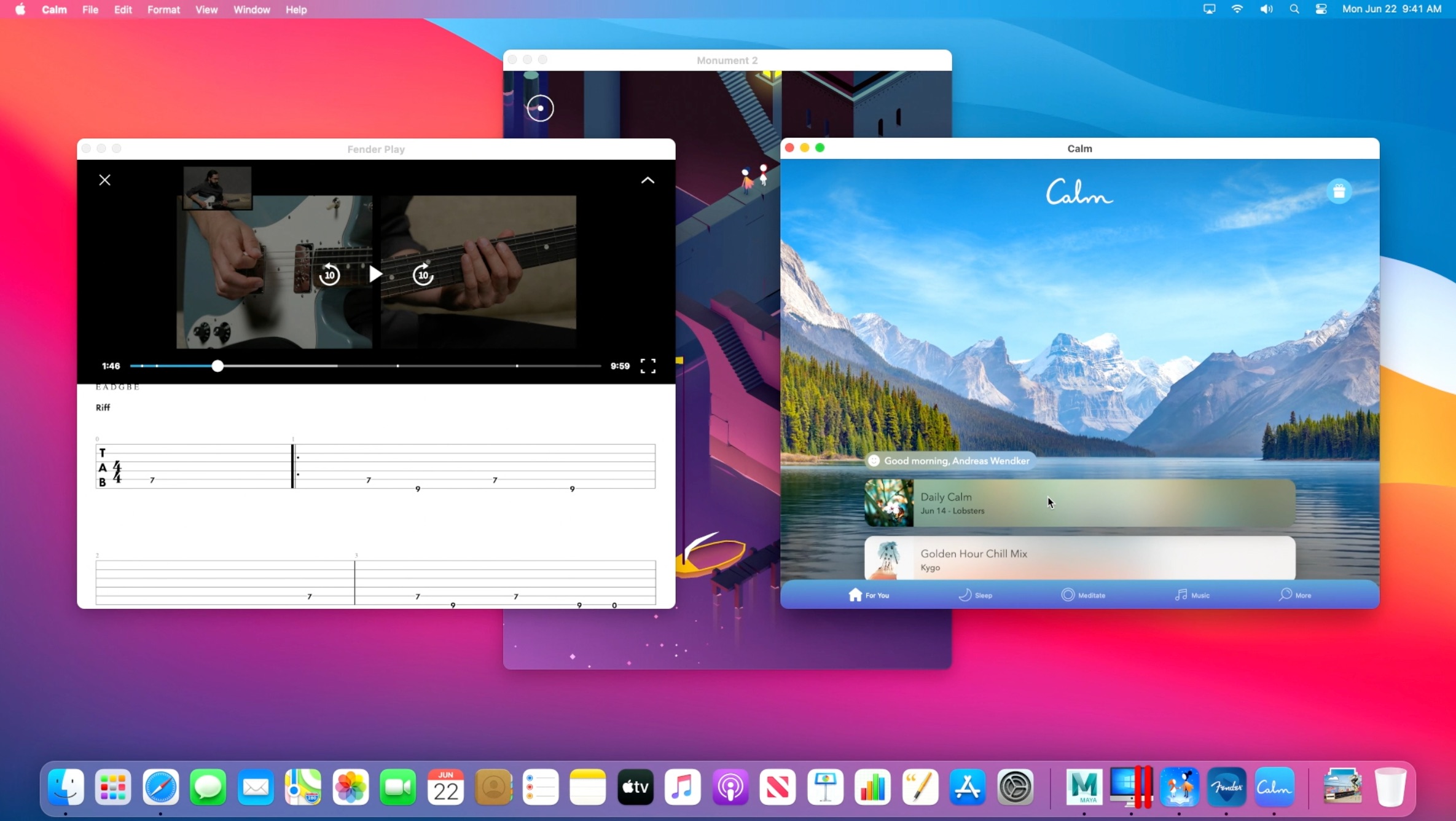Apple demonstrated how iPad and iPhone apps could work natively and completely unmodified on a Mac with Apple's silicon. Demonstrations included Monument Valley 2, Fender Play, and the Calm app.