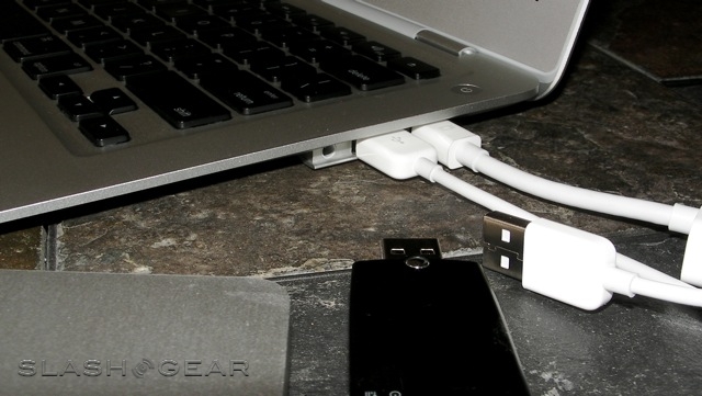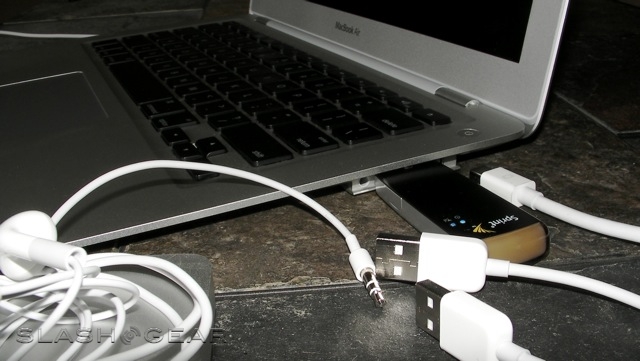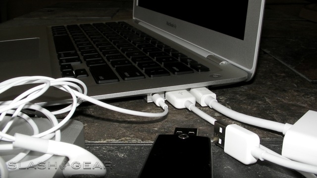 In fact similarities between the Air, the MacBook and the MacBook Pro are now all the more obvious. Casing design is one such area: Apple was generous with their credit to the Air during the recent unibody MacBook announcements, as paving the way in laser-cut aluminum design. Requiring a little closer examination is the switch from Mini DVI to Mini DisplayPort, again as found on its bigger siblings, supporting DVI, VGA and Dual-Link DVI via various adapters. Otherwise there's still the same single USB 2.0 port and headphone socket, with wired Ethernet available only via an optional USB-to-RJ45 adapter.