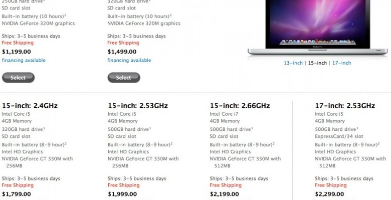 Apple is now showing 3-5 day shipping estimates for all US MacBook Pro notebooks, lending further weight to speculation that the company is planning a full-scale refresh of the range later this week. New models are expected to debut on Thursday, and in fact are already believed to be in-stock – though not on sale – at some large European resellers, under threat of Apple excommunication should the vendors open the sealed packages early.