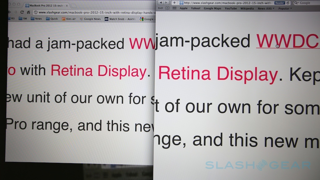 Apple uses a similar scaling-up system for non-Retina apps as on iOS, which means you get software that's usable in terms of on-screen size (rather than tiny) but blurred and pixelated. It's not only native software that suffers, but webpages in browsers other than Safari: FireFox and Chrome are distinctly underwhelming in how they render sites, with text and images each looking like they've had a run-in with a dot matrix printer.