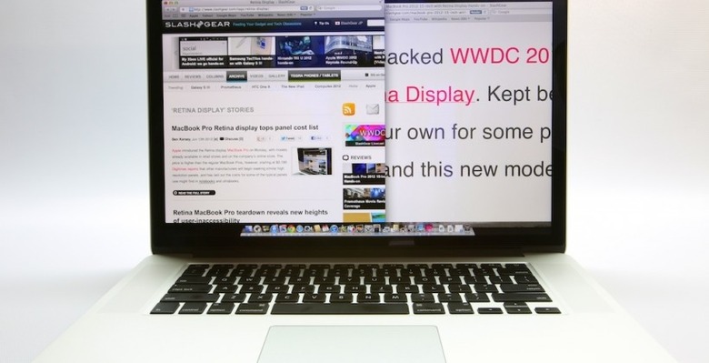 Make no mistake, the Retina Display of the new MacBook Pro is the notebook's pièce de résistance. Running at 2880 x 1800, it delivers four times the standard resolution of the previous Pro, and is finally capable of showing iOS developers a full-size preview of apps for the new iPad. Apple's "Retina" branding refers to whether the human eye is capable of individually-distinguishable pixels at a typical user-distance, hence this 221ppi panel getting the label while not matching the 264ppi of the new iPad or 326ppi of the iPhone 4S, each of which are expected to be held closer to your face.