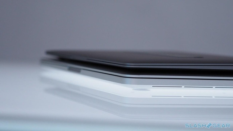 What's interesting is that you don't, at first glance, necessarily see the layout as being full-size. That's because of the larger-than-normal keycaps, 17-percent bigger than on the MacBook Air, leaving narrower tracks between them. They're lower-profile, too, and while it may be the definition of a first-world-problem, the fact that this means they don't leave greasy key indentations and smudges on the display is a huge improvement. It's hard to say if this was a happy accident or planned, but kudos to Apple either way.