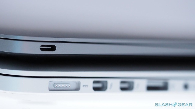 USB-C is going to be the next big standard, a single connector that – like Lightning on the iPhone – can be inserted in either orientation. While it's smaller than the USB 2.1 it replaces, it can handle more power, so Apple has been able to do away with the separate power socket (and unfortunately the MagSafe magnetic connector at the same time, which on previous MacBooks has saved me from inadvertently dashing the notebook to the floor after tripping over the cord). It can also be turned to data, at USB 3.1 speeds of up to 5 Gbps, and displays, hooking up to DisplayPort, HDMI, and VGA monitors and projects if you have the right adapter.