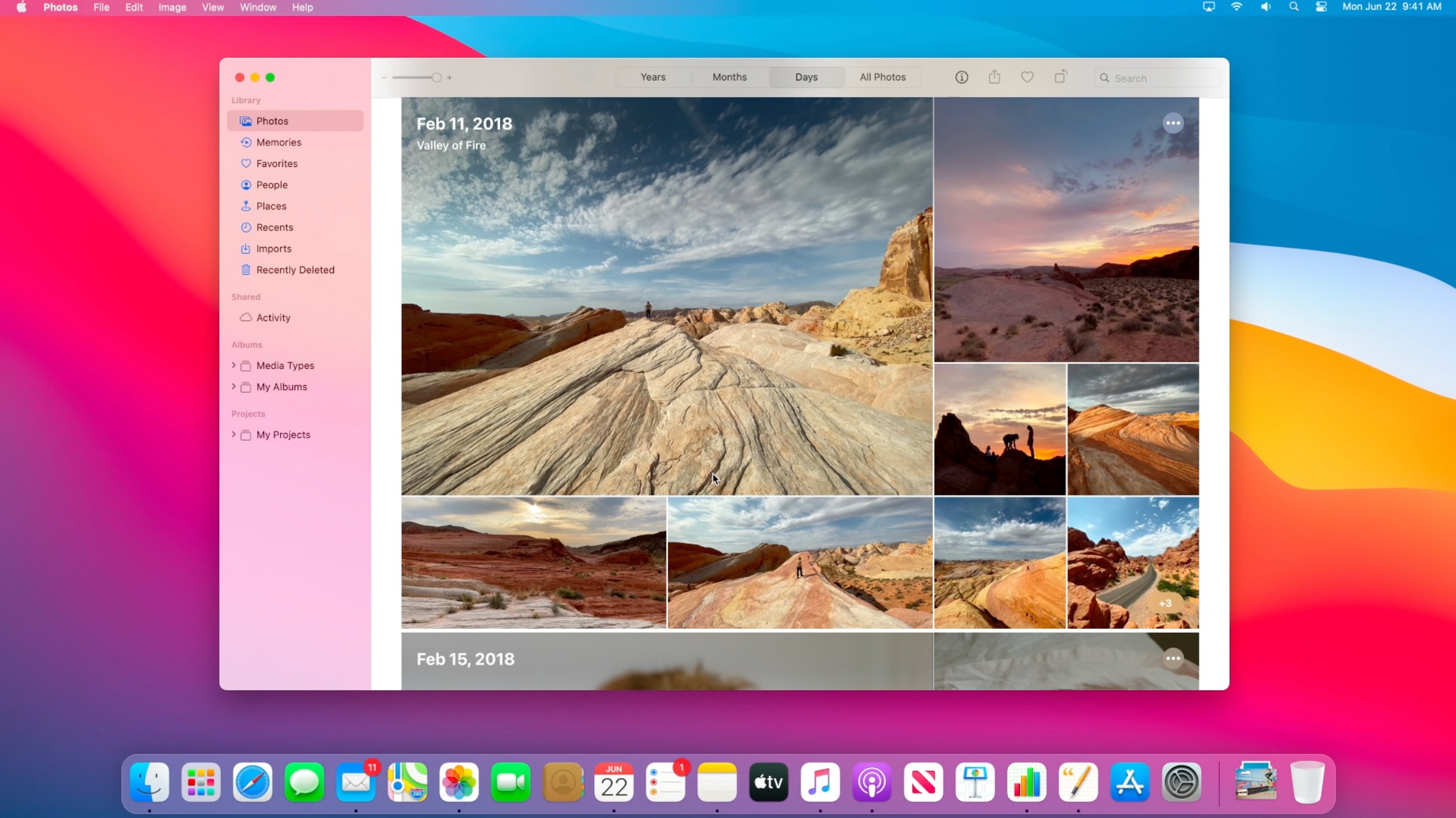 In Photos, the photo grid is now backed by Metal for smoother navigation. The menu bar is now translucent – so you can see the wallpaper through it – and the icons have been reworked too.