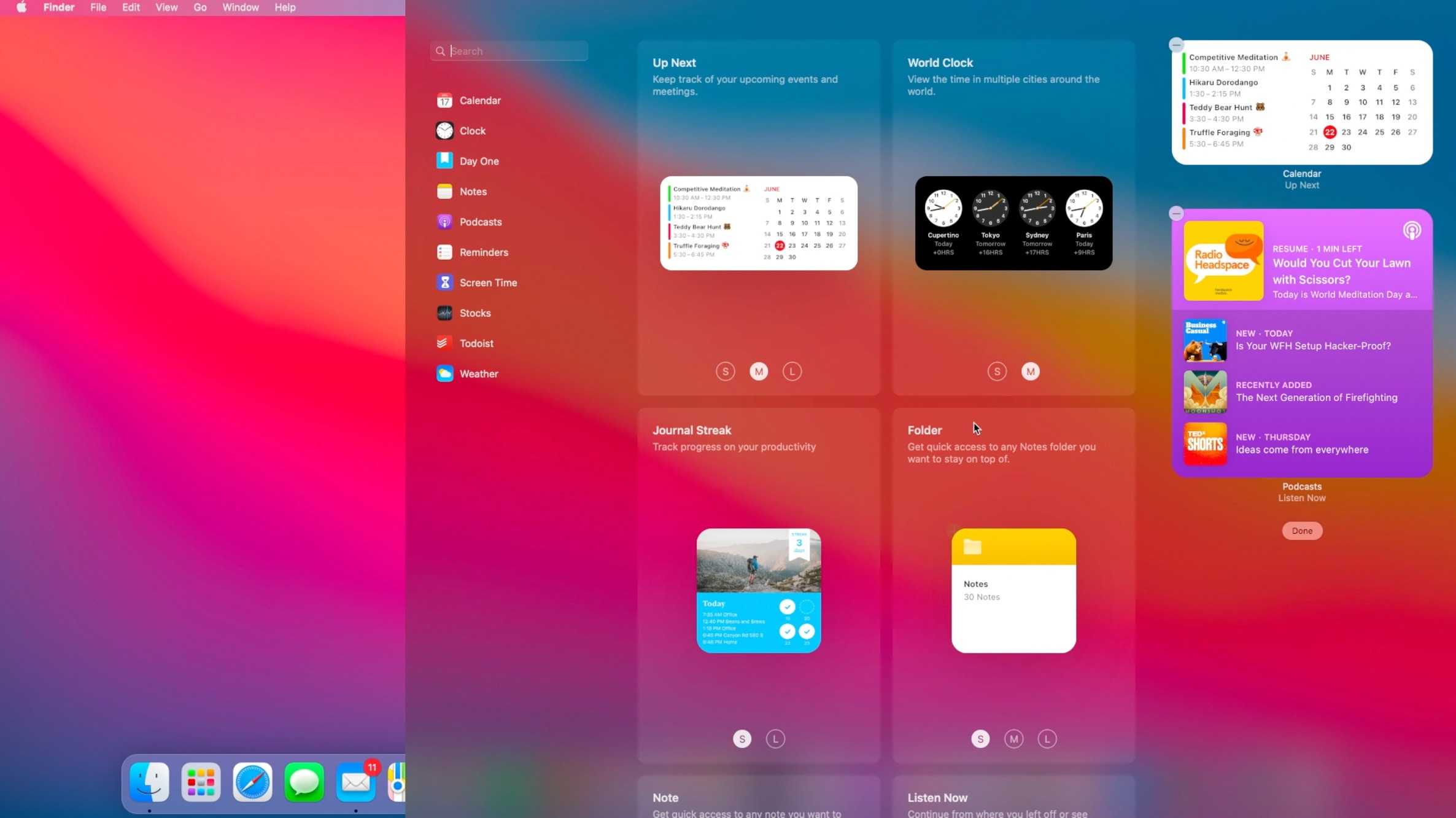 Control Center has been brought over from iOS. There's everything from wireless, brightness, and volume, and you'll be able to drag individual controls up to the menu bar for even quicker access. Widgets, too, have been updated in Notification Center, with a unified view and the ability to customize with Apple's own widgets and those from third-party developers.