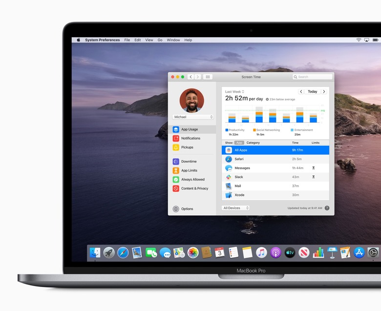 It's not the only iOS feature crossing the divide. Screen Time has been added in macOS Catalina, giving a weekly report into how users spend their time on their computer. If you've set up Downtime or App Limits on your kids' iPad or iPhone, iCloud synchronization for Screen Time will automatically bring those settings to the Mac, too. Parents can also see what their kids have been doing – such as which apps they're using – with Family Sharing.