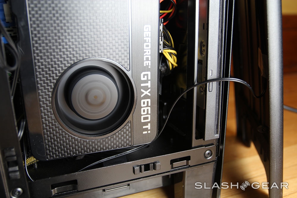 It's time to take a peek at the MAINGEAR Potenza, a desktop gaming machine that's small enough to fit under your desk if you wish, or sit right up out in the open with its powerful innards hidden by a perfectly stripped-down black and red outer metal body made of anodized aluminum with a steel frame inside. The unit we've got here utilizes the fabulous GeForce GTX 660 Ti for graphics, cutting the cost of the final build while it keeps with the Kepler power NVIDIA is known for. The Potenza is a customized (and customizable) machine that places heavy emphasis on hand-constructed and quality-assured building from MAINGEAR's own highly-skilled staff of PC geniuses – and it shows.