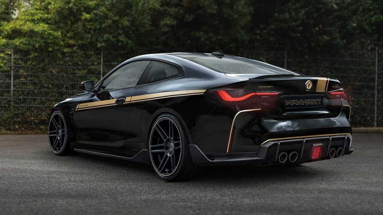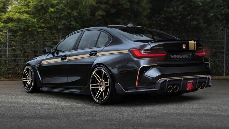 The mods include a Manhart Performance cat-back or OPF-back exhaust system with twin carbon tailpipes to unleash those spent gasses. According to Manhart, their Mhtronik Powerbox is also applicable to a standard M3 or M4, allowing the motor to churn out 590 horsepower. If you're keeping count, that's 117 more horsepower than a typical M3's 473-horsepower output. Nice.