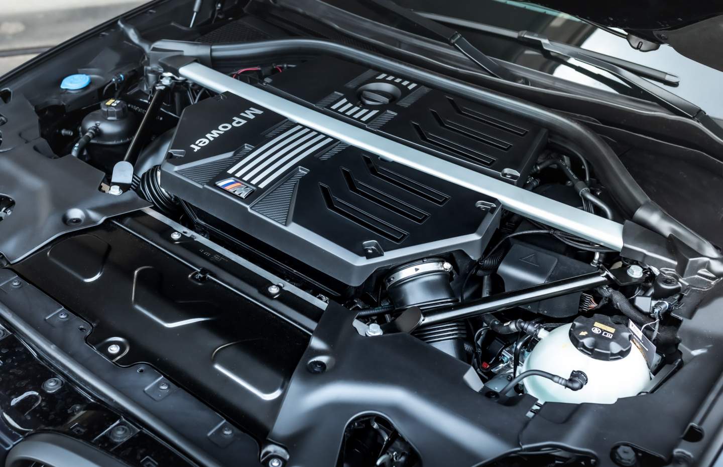 Instead, the MHX3 600 has 22-inch Manhart alloy wheels by Alpina, an 8-piece forged carbon-fiber body kit, and a Matt Dark Blue body wrap with grey stripes and lettering. We can talk about how it looks all day, but the hallmark of every Manhart creation is what's under the hood. In this case, we're talking about a tinkered version of the X3 M Competition's stock 3.0-liter inline-six engine.