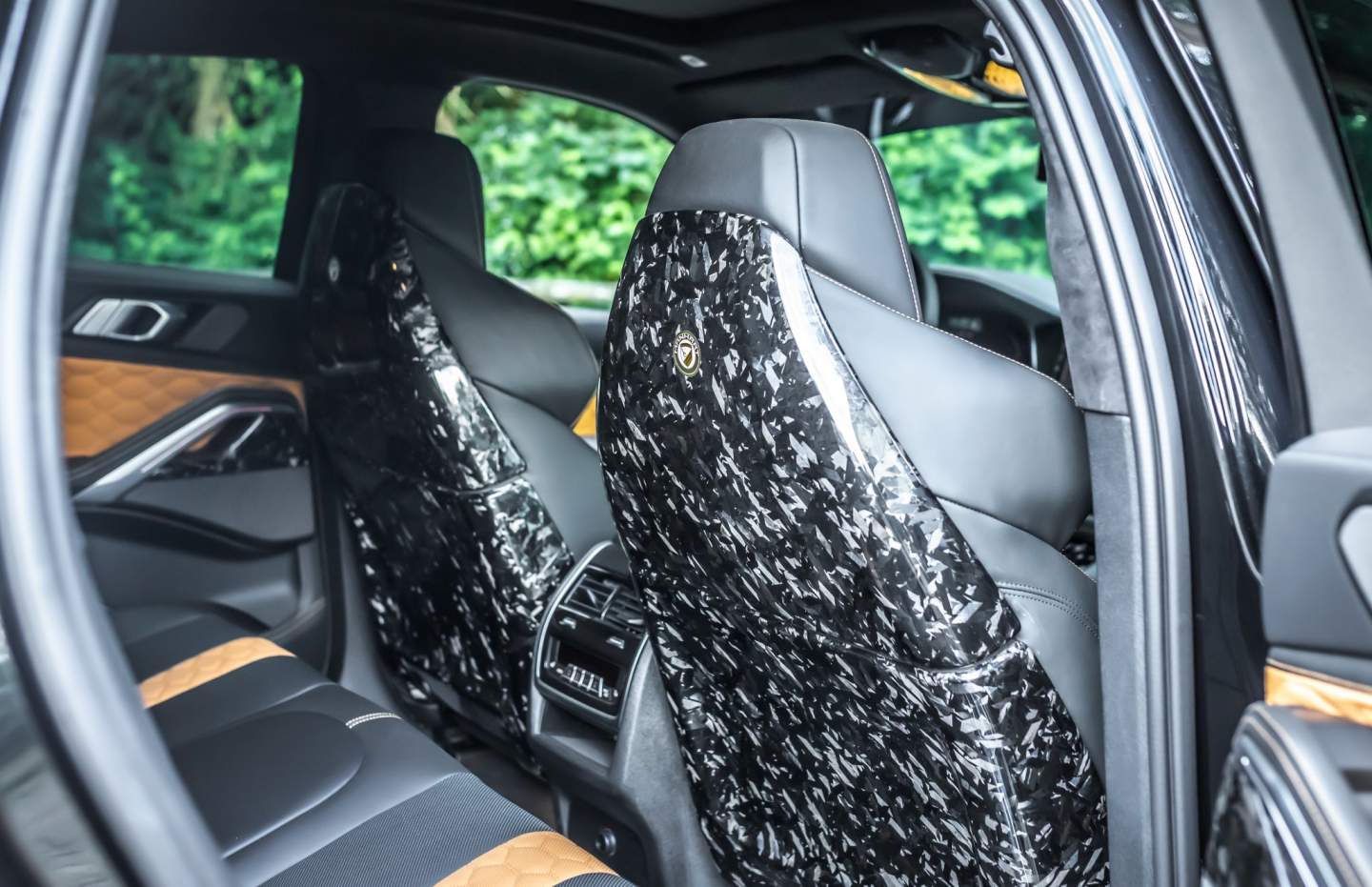 The artistic carbon theme is also inherent in the cabin with a 12-piece forged carbon interior kit. And like the exterior, it's hard to miss Manhart's forged carbon trimmings when sitting inside the MHX6 700WB. You will find it on the dashboard, center console, door panels, and seatbacks.