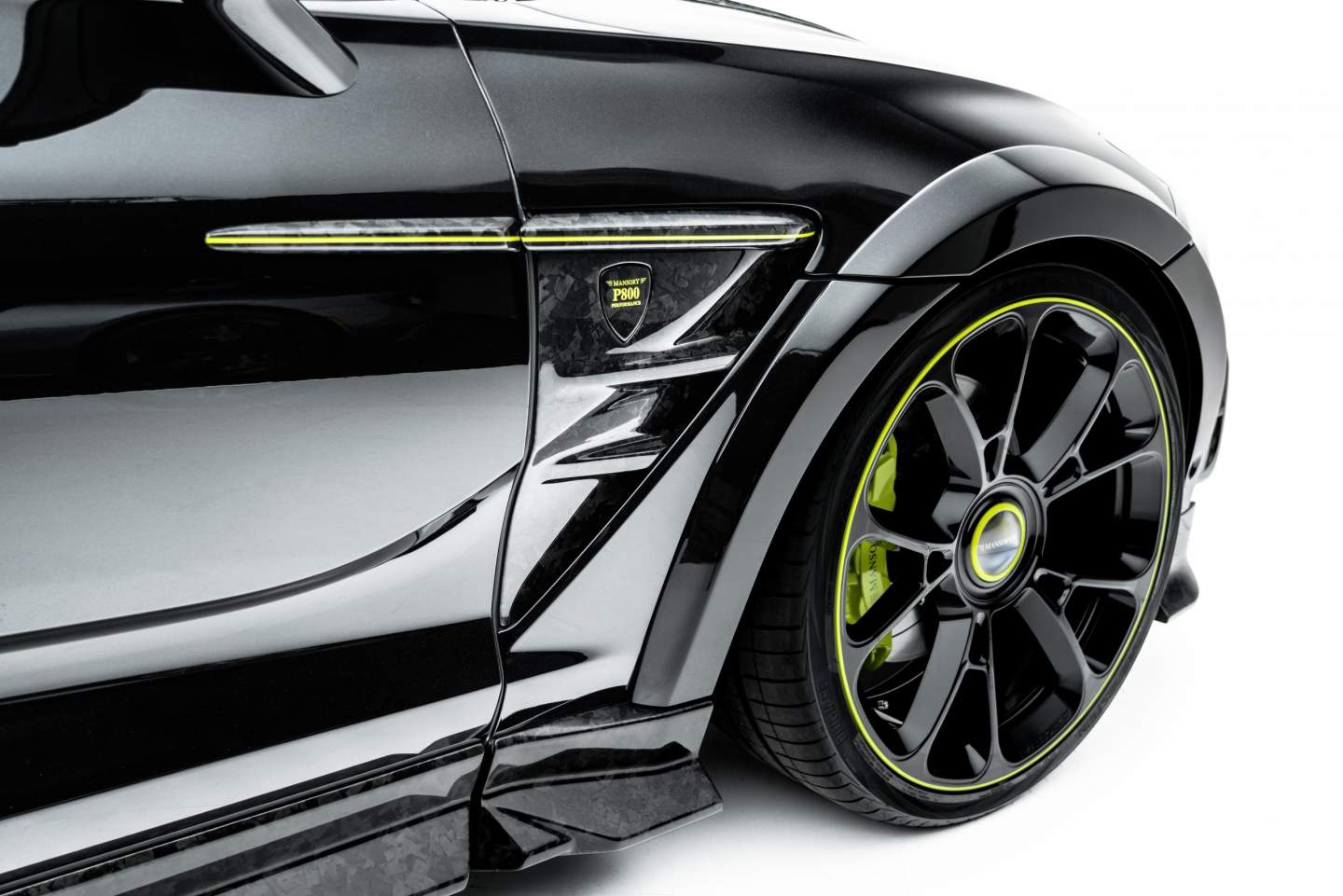 The widebody kit also comes with unique Mansory rear flanks and custom exterior accents, all rendered in genuine carbon fiber and contrasting lime green trimmings, of course. The conversion package includes a gorgeous set of 24-inch black wheels with the same lime green accents as the rest of the vehicle.