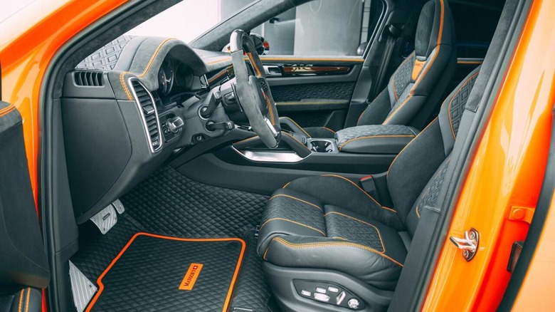 There's more. The bespoke conversion also includes an Alcantara headliner, solid aluminum pedals, and custom floor mats. Also included is a high-performance exhaust system to complement the blown V8 motor's stout power output. Mansory has yet to divulge pricing, but a standard Porsche Cayenne and Cayenne Coupe starts at around $69,000 and $78,000, respectively.