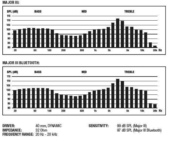 As you might expect, it's the Major III Bluetooth that gets the lion's share of attention in today's announcement, though both models share some similarities. Both are equipped with Marshall's new 40mm dynamic drivers, with the company promising "enhanced bass response, smooth mids, and crystal-clear highs" as a result. Have a look at the specifications Marshall shared for both in the image below.