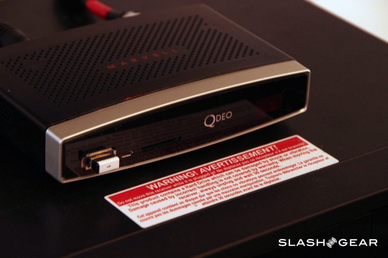 The box on display is just a mock-up design for Marvell's partners, but already it's considerably smaller and lighter than conventional units. Output includes HDMI and standard RCA. One of Marvell's unique additions to the platform is integrated upscaling, for the elements of Google TV that don't look so great on a 1080P television, like icons from downloaded apps. Marvell wasn't ready to announce its specific partners or their intentions at the show.