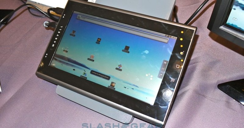 Marvell has been showing off its ARMADA 600-based Android tablet reference design, ahead of what the company says will be several manufacturer-branded products using the 1080p-capable chipset launched at CES 2011 early next year. The demo slate has a 10.1-inch 1280 x 720 capacitive touchscreen and runs Android 2.2 Froyo, and was shown simultaneously driving its own display and an external HDTV over HDMI.Video demo after the cut