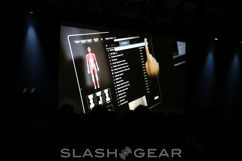Cook then rolled a video which showed how apps on Apple products are changing the world (we'll have that video for you imminently as well here as soon as it's available.) This video showed how one man created an app using GPS to allow blind individuals move through the world, while another, Srini Swminathan from Mumbai let the audience know that an anatomy app made for Apple products was changing the way he did business in the classroom.