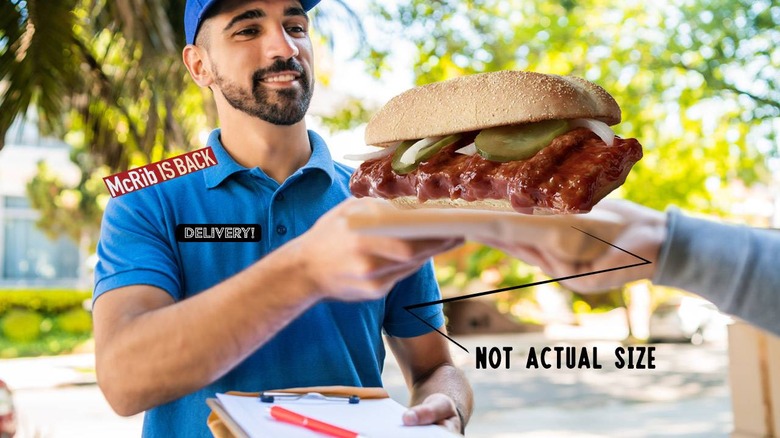 This might also be the first time you'll have the opportunity to get a McRib delivered to your home. Courtesy of the "McDelivery" system – and Uber Eats, and so forth – McDonald's will have the McRib available for delivery to your home.