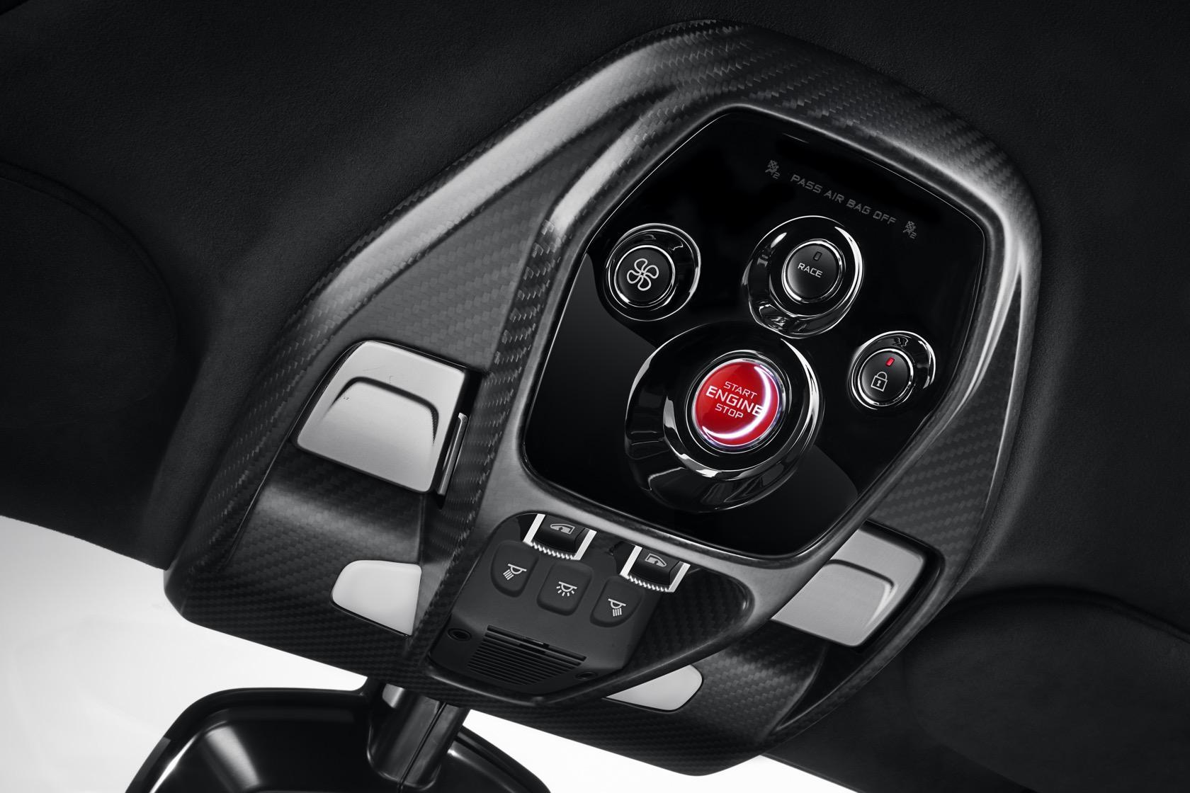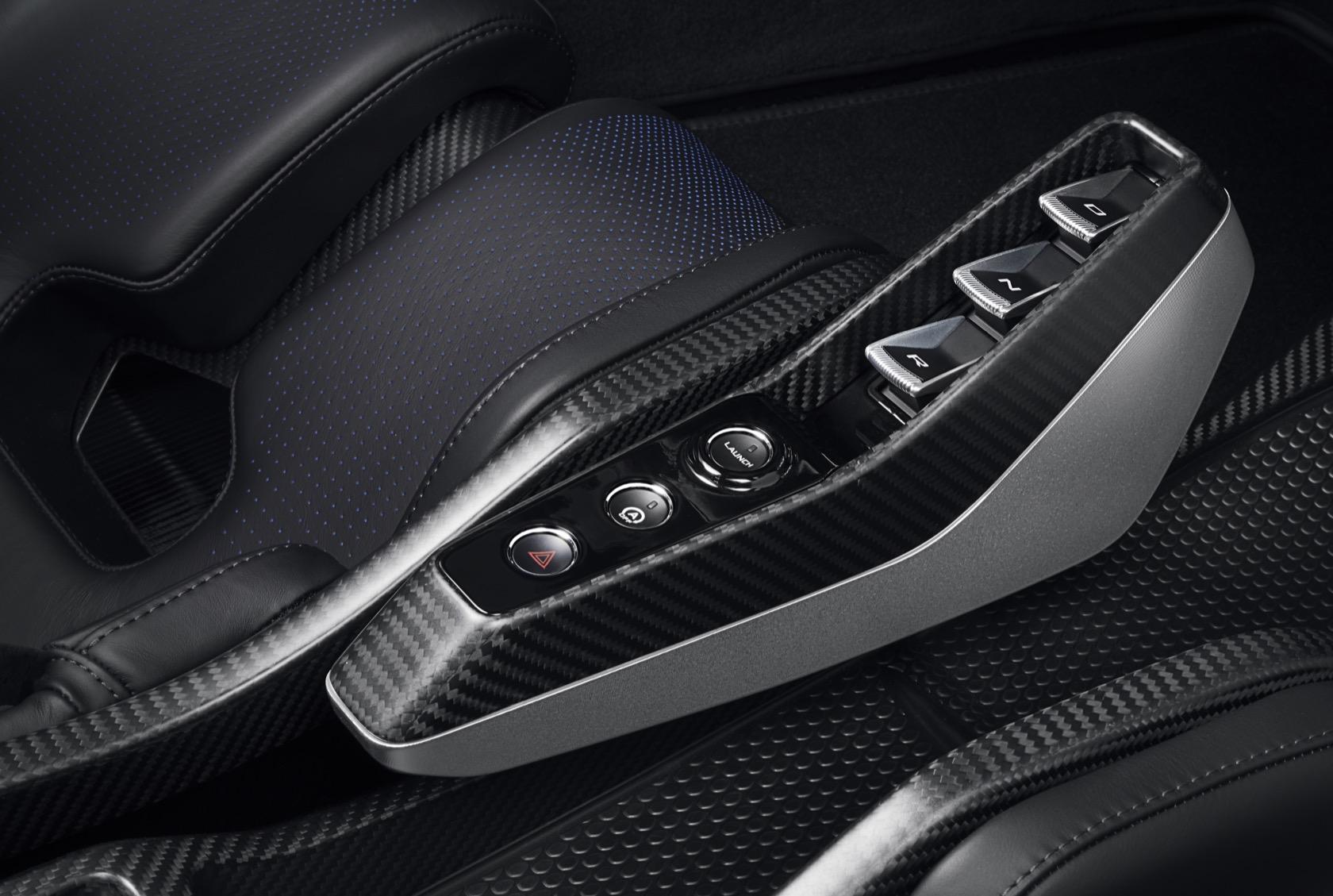 McLaren has mounted the engine starter on the roof, for instance, in a panel next to the door release levers. It's also where you'll find the Race mode button, the fourth drive mode that has been added alongside Comfort, Sport, and Track. That drops the hydraulic RaceActive Chassis Control II (RCC II) suspension even more, lowering the center of gravity in the process.