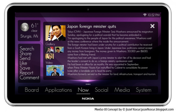 With the Nokia and Microsoft partnership, the once promising MeeGo OS has been relegated to research and development status with very little chance of ever becoming a mainstream platform. However, that doesn't stop developers from continuing to think up new UI concepts for the OS such as the one shown below, designed by Jozef Kocúr.
