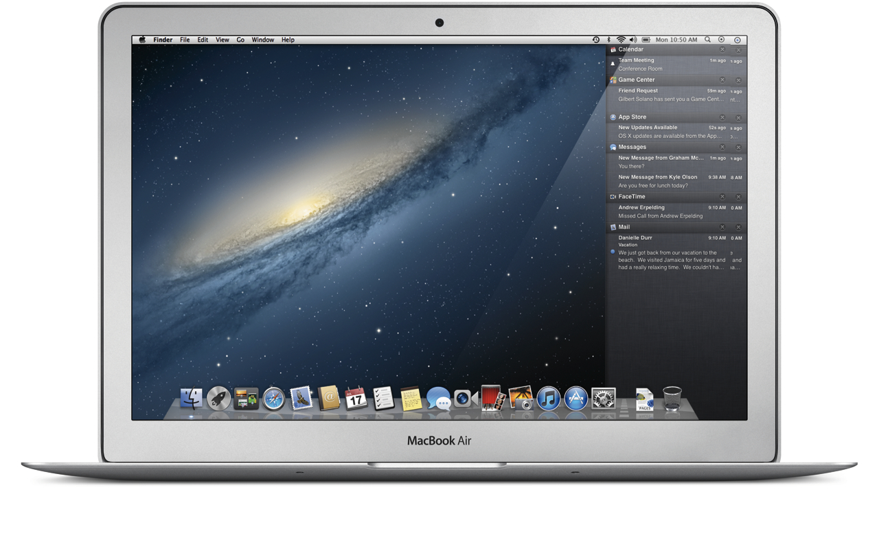 As in iOS 5, all of the notifications are organized by app; out of the box, Mountain Lion supports Calendar event reminders and invitations, new Mail from VIP senders (which you star in your contacts), new IMs in Messages, Reminders that are due, any missed FaceTime calls, friend requests and game invitations in Game Center (more on which later), OS X updates from the Mac App Store, and direct messages and mentions from Twitter (which is now baked into OS X, more on which in a moment). There's also a new Notifications API allowing third-party apps and services to hook into the Notifications Center as well, even if the app itself isn't running.
