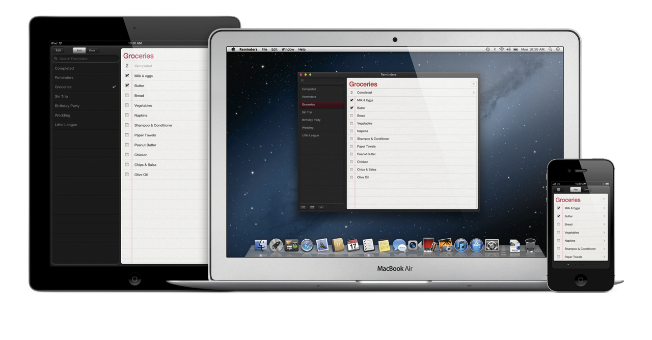 There are numerous todo list apps for OS X, but Mountain Lion's Reminders is likely to win fans by virtue of its iOS integration. Just like its iPhone and iPad counterpart, the new Reminders Mac app supports creating lists and optional checkboxes, due dates with alerts, and integration into CalDAV-compatible clients such as Google's Calendar and Yahoo! Calendar. As well as creating tasks within the app, you can drag a task in from Mail.