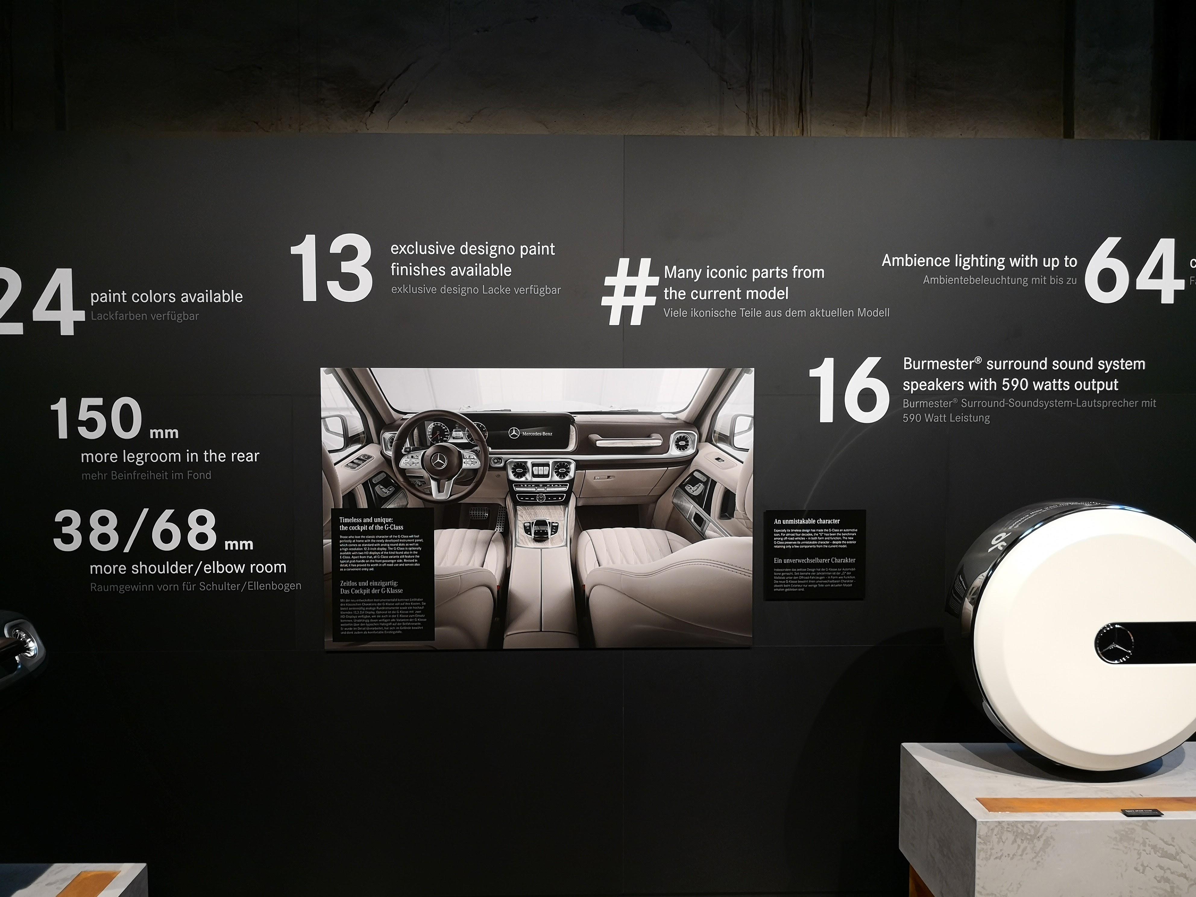During Metzger's thorough walkthrough of the changes, one thing became clear: the new G-Wagon is particularly focused on usability. Effective legroom in the front has increased by 38 mm (1.5 inches), shoulder width by 38 mm, and elbow width by 68 mm. It's almost like sitting in an S-Class sedan, only much higher up. With the current model, getting a foot in to climb into the rear seat isn't the easiest maneuver, so Metzger and his team reworked things in the MY2019 SUV to make entry and egress much easier for rear passengers. Primarily, the door opening has changed: it's a little longer in length, creating more space to pass through.