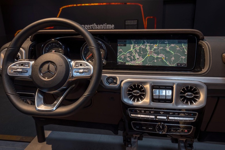 Differential lock switches are one thing, but most modern drivers aren't going to be willing to give up the digital instrumentation and advanced infotainment systems modern luxury cars have adopted. As a result, gone are the G-Wagon's analog gauges, replaced with more futuristic screens that are infinitely reconfigurable. It's effectively what you'd find in the S-Class, right down to the steering wheel with its multifunctional buttons, switches, and capacitive touchpads. As for the rest of the center stack – including the infotainment system and HVAC controls – they switchgear is all borrowed from the E-Class. It looks and works well.