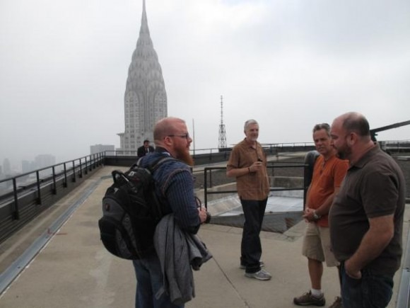 Ken Ralston (center), scouting rooftops during production of Men in Black 3 with Jay Redd on left via @ImageworksVFX