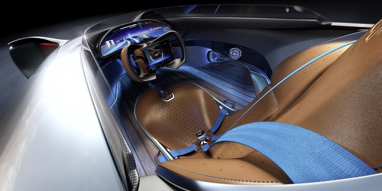 In this case, "progressive luxury" is the ability to leave everyone else at home – along with most of your luggage, for that matter – and go out to play with a 738 horsepower electric drivetrain. The EQ Silver Arrow may look small, but even with a thin rechargeable battery sandwiched into the underbody, it's still good for 80 kWh and over 250 miles of range.