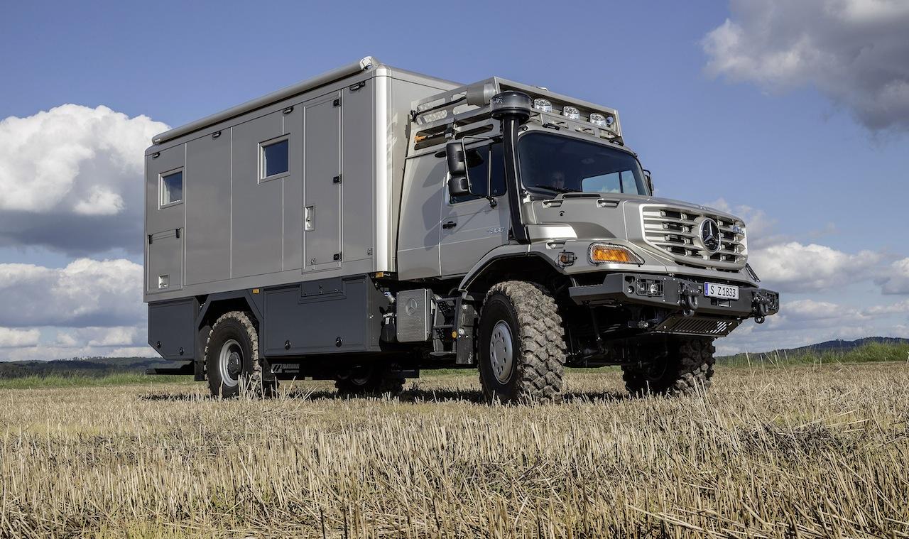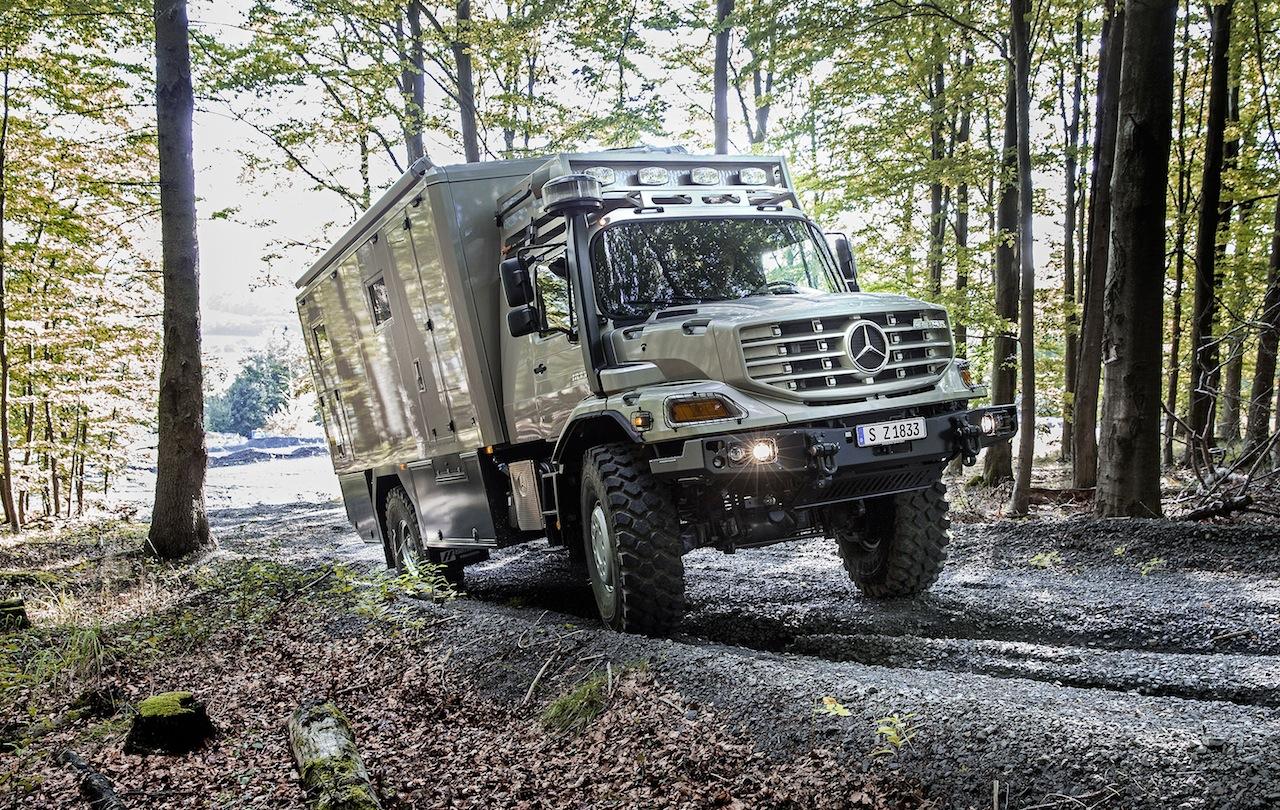 First there was glamping, injecting a little glamour into dull, pedestrian camping; now, Mercedes-Benz wants to crank that up to 11 with its latest bizarre Zetros version, a luxury mobile home with the off-roading capability of a Unimog. The carbon fiber vehicle targets outdoors-types for whom the thought of exploring the wilderness without bringing natural stone floors, real-wood furniture, and a proper glass shower is anathema.