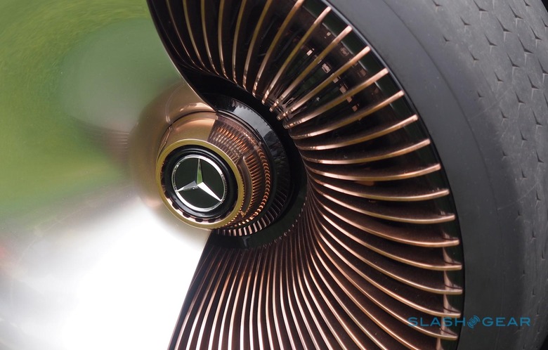 Indeed, much of the car's charm is in the detailing. The EQ Silver Arrow shares some of the EQ elements we've seen before, like the illuminated sections in the grille – here a narrow wedge mounted low, close to the ground – but also introduces new features. The stunning wheels, with their partial covers, are probably the most attention-grabbing.
