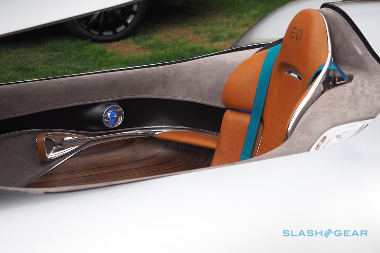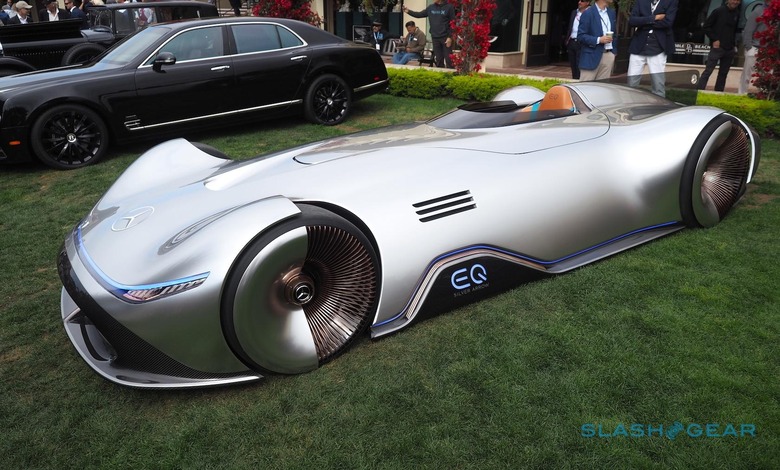 It's a good year if you like single-seater electric cars. Three such concepts were brought along to Pebble Beach: Infiniti had its Prototype 10, an evolution of the more retro Prototype 9 from last year, while Audi's PB18 e-tron put a more futuristic spin on the idea. Mercedes' car took a different tack, but was no less striking for it.