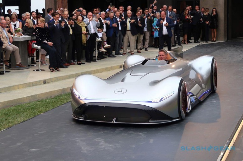 It's a good year if you like single-seater electric cars. Three such concepts were brought along to Pebble Beach: Infiniti had its Prototype 10, an evolution of the more retro Prototype 9 from last year, while Audi's PB18 e-tron put a more futuristic spin on the idea. Mercedes' car took a different tack, but was no less striking for it.