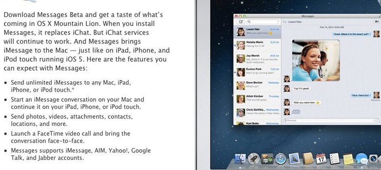 We're seeing some hiccups with the Messages Beta site as it suffers under the attack of thousands of eager would-be users, but keep trying and you should be able to download. For all the OS X Mountain Lion details, check out our full preview.