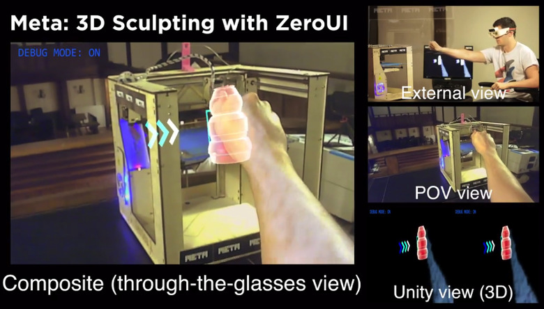 Wearables start-up Meta has spilled its first demo of the latest Meta.01 developer edition augmented reality headset in action, promising shipping of the wearable computer from as early as the end of April. The wearable, which uses twin transparent displays to overlay digital graphics on top of the real-world, will come preloaded with a gesture-controlled sculpting and 3D printing app, which Meta has demonstrated in its new video: the wearer is able to indicate the shape of the required object in front of them with their fingers, and have that virtual shape automatically rendered for a 3D printer and made real.