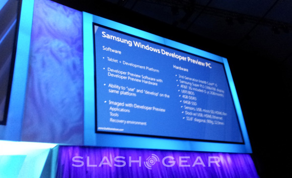 If there's one thing that makes the majority of these developer-based conferences (this week's being Microsoft's BUILD conference) its the pre-release hardware that you often get to take home for free. This week at BUILD, Microsoft is giving out a Samsung Windows Developer Preview PC, one coming complete with what Microsoft calls a Tablet + Development Platform. This slate PC (though they're purposefully not calling it that) consists of a 2nd Generation Intel Core i5 processor, a Samsung Super PLS 1366 x 768 display, and one full year of 2GB/mo AT&T 3G included for free. Developers have only to pick up their box this week, one for each of the 5,000 BUILD attendees.