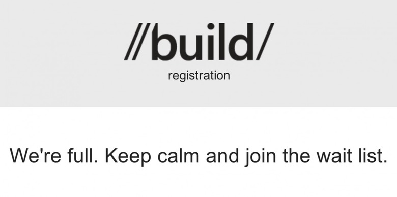 Tickets for the Build 2012 developer conference have already sold out, roughly an hour after Microsoft put them on sale. "We're full" the message on the Build registration site now reads, advising would-be attendees to "Keep calm and join the wait list." It's unclear exactly how many tickets Microsoft had to offer, though waiting for a drop-out now seems the only way to get on the guest-list.