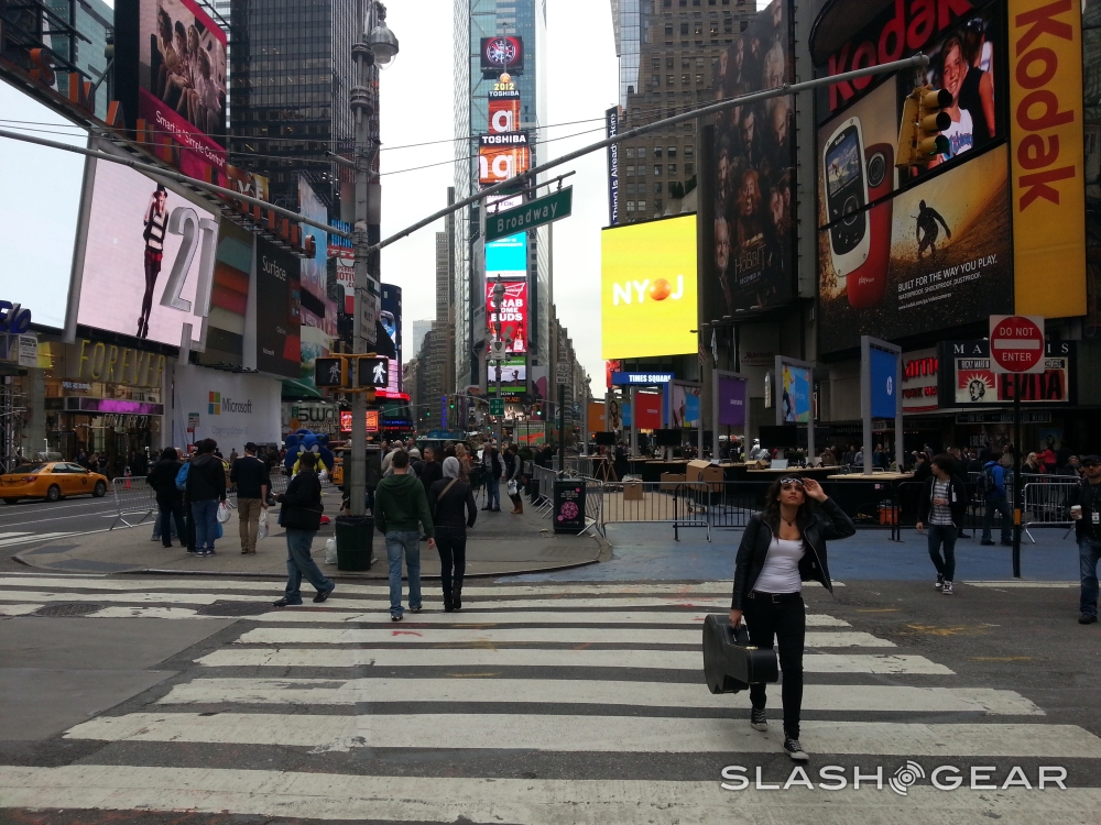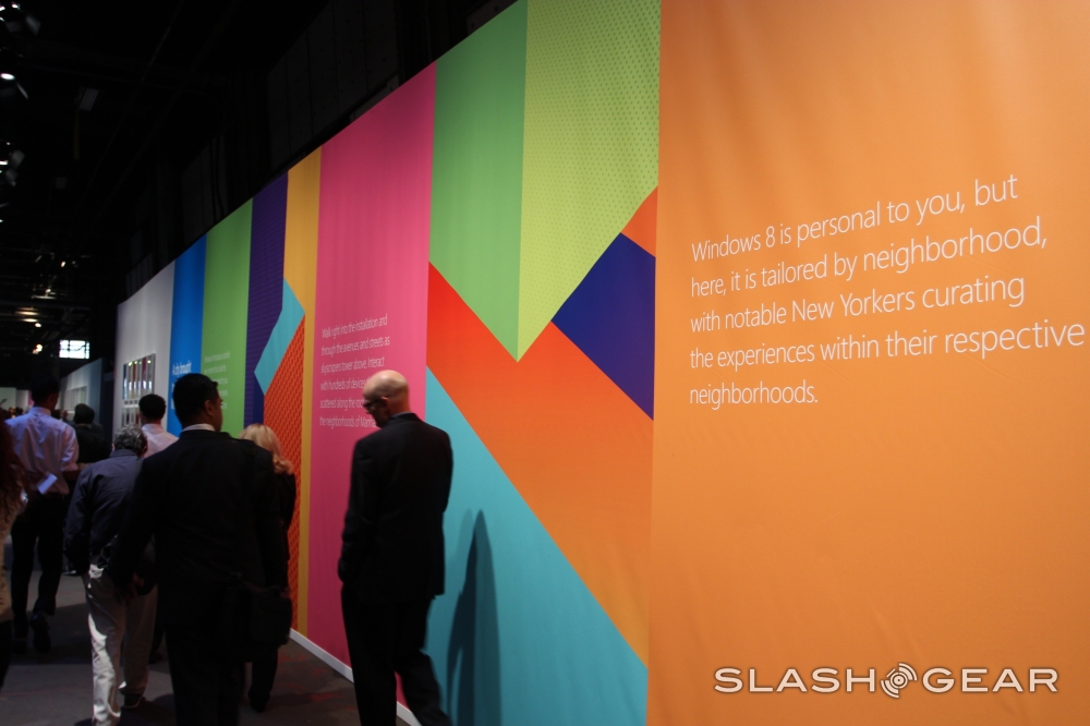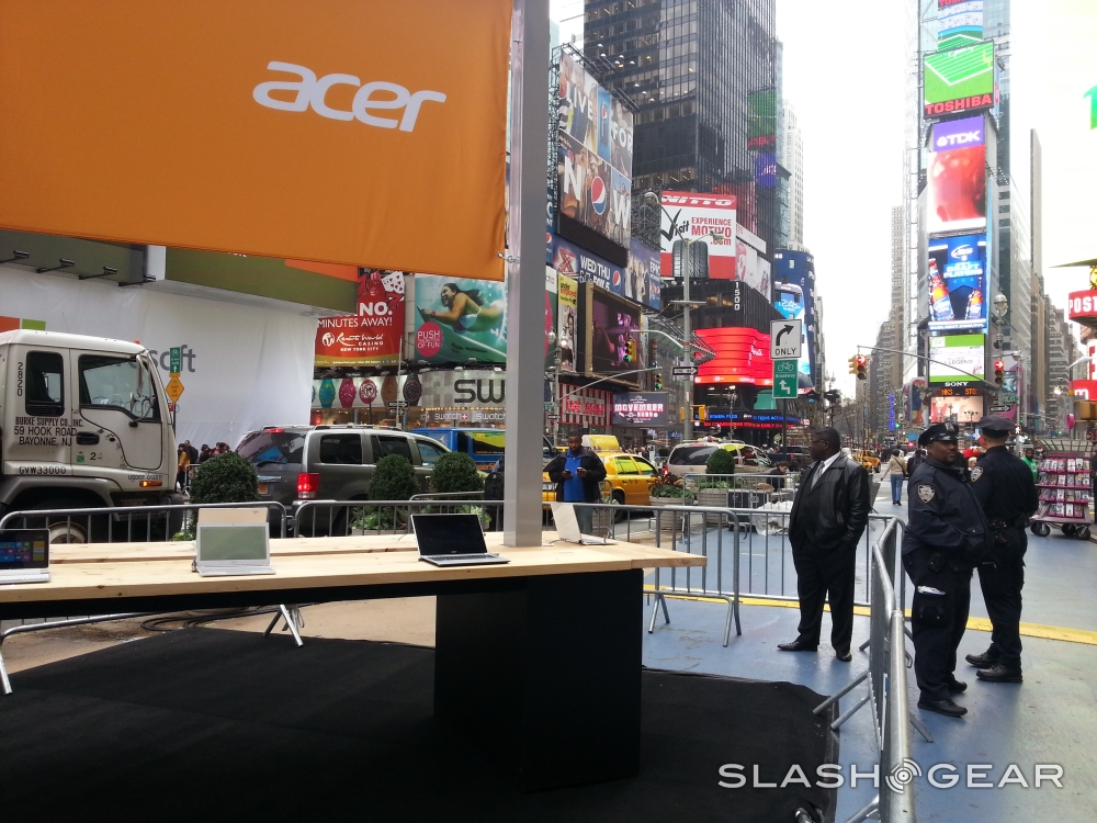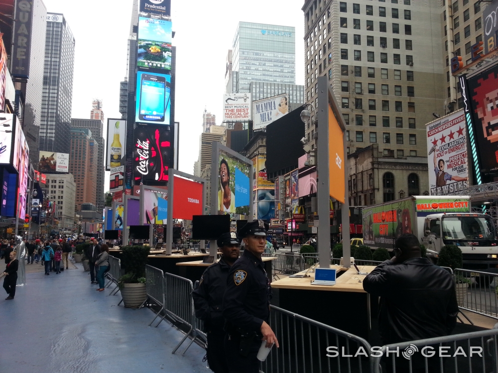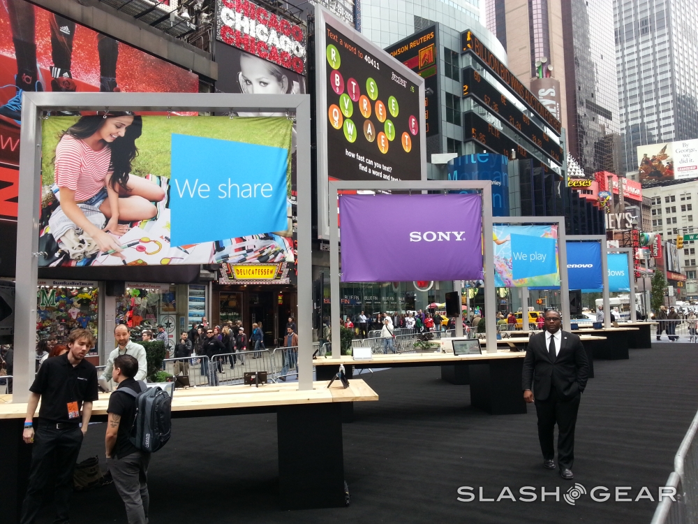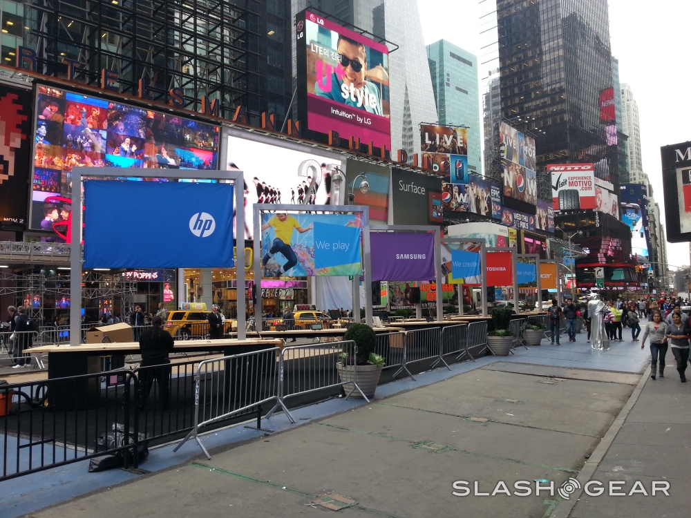 In addition to the massive takeover of a fabulous 39 digital boards with one massive Windows 8 Start Screen later tonight, Microsoft has made it's play for the very center of Times Square with a hands-on experience for the public. Each of Microsoft's major manufacturing partners was invited to bring their own wares to what's essentially the most highly-visible showroom floor in the world, with anyone and everyone invited in to take a peek at the wares starting here at the launch of Windows 8. This presentation adds to the already unique display the company (and companies, as it were) has made for the press and the public in an effort to create a winning atmosphere for the birth of the newly released operating system.