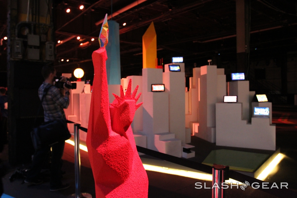 Also included in the Microsoft bid for attention in New York City is an art-like presentation on Pier 57, it being a city of Windows 8 products in a color-splashed white city, each of them able to be viewed and in some cases available for hands-on action as well. This public display is advertised throughout the city and on the web for the public to head over and see for several weeks.
