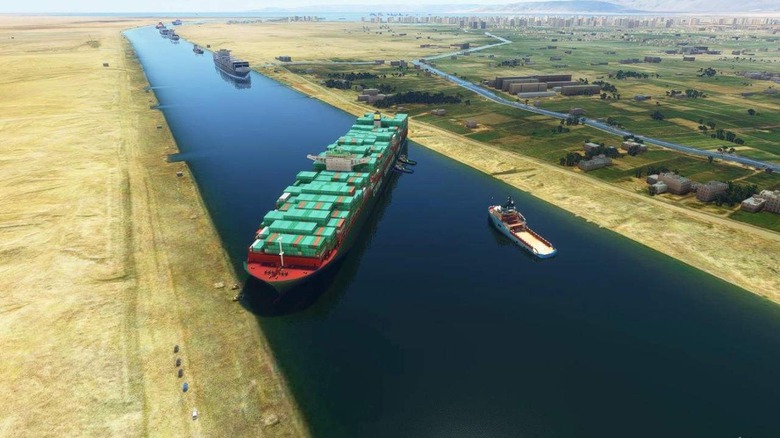 Microsoft Flight Simulator Mod Blocks Suez Canal With A Cargo Ship