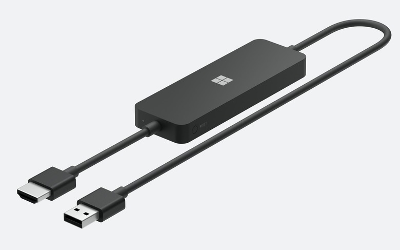 Fifth and final new accessory today is the Microsoft 4K Wireless Display Adapter. Again, the name doesn't take much decoding: it's an easy way to hook a Windows laptop – such as a Surface Laptop Go – up to an external display, supporting up to 4K resolution. On one end there's a USB Type-A plug; on the other, an HDMI plug. It's priced at $69.99.