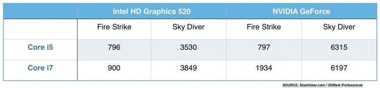 I've thrown the results into the table above, but the upshot is basically that you get roughly double the graphics grunt with the discrete GPU. That observation was borne out in real-world use, with tasks like HD video exports completing in comparatively short order when the NVIDIA keyboard dock was in place.
