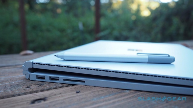 Where the Surface Pro 4 sacrifices a few extra ports in the name of tablet svelteness, the Surface Book finds room for two USB 3.0, a full-size SD card reader, headphone/microphone jack, and a Mini DisplayPort output (which I'd gladly sacrifice in favor of HDMI). Just as with the Pro 4, there's a new Surface Pen with 1,024 levels of pressure sensitivity.