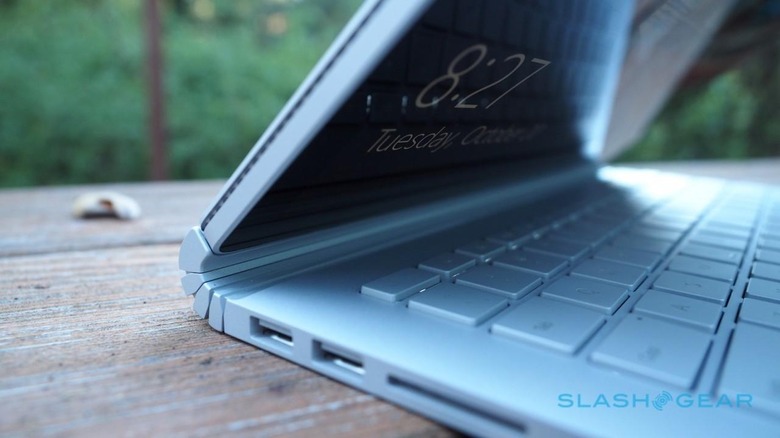 Instead, Microsoft's engineers effectively stretch out the laptop's footprint as the hinge unrolls, allowing the base to keep the while thing stable without being unduly heavy. It works, too: I've been able to stab at the screen without the notebook tipping back or even wobbling.